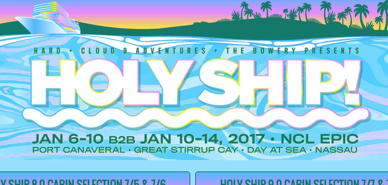 HOLY SHIP! has officially released their stacked lineups for each of the 2017 back-to-back four-night January sailings. Presented in partnership by HARD Events, Cloud 9 Adventures and The Bowery Presents, electronic dance music’s latest adventure will take a new course as it sets sail for the first time on the beautiful luxury liner by Norwegian Cruise Line, appropriately dubbed the “Epic.” Each sailing will embark from Port Canaveral, FL, making stops in Great Stirrup Cay and Nassau, Bahamas, with a day at sea scheduled in-between. Both sailings will experience the famous HOLY SHIP! Beach Party, to be held on the stunning private island of Great Stirrup Cay. Check out the fill lineups below!